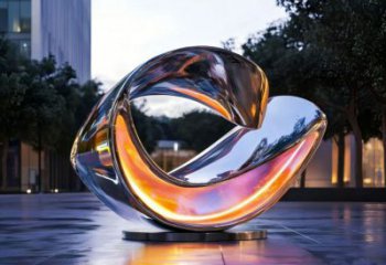 • 《鎏光環旋》—— 城市天際下的鏡面不銹鋼創意抽象景觀雕塑